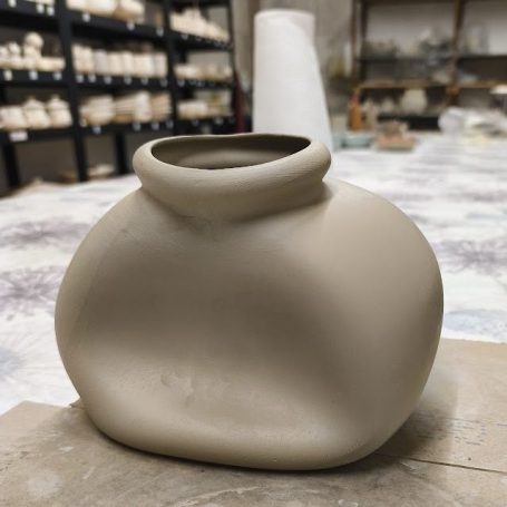 Nach Trocknung wird die Schale/ Vase das 1.Mal gebrannt, anschliessend von mir in Wunschglasur glasiert.