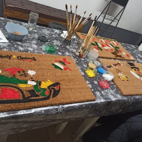 In diesem Workshop werden Fussmatten aus Kokosfasern mit speziellen Acrylfarben bemalt. Es stehen euch zahlreiche Schablonen bereit. Natürlich kann man auch frei Hand sein Wunschmotiv auf die Fussmatte zaubern.